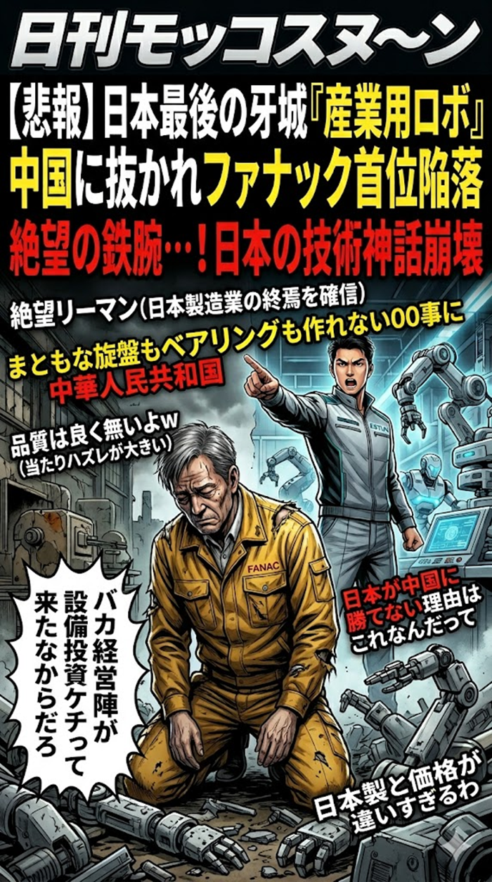 日本の製造業、ついに「終わりの始まり」か!?世界に誇る最強メーカー・ファナックが、中国市場でまさかの首位陥落。安さとスピードで迫る中国勢に、技術大国ニッポンはどう立ち向かうのか……ネット上の熱い議論を超厳選!
