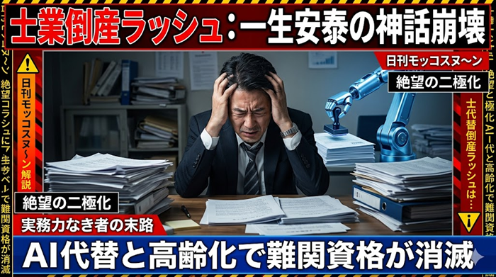 「資格さえ取れば一生安泰」――そんな昭和の常識が、令和のいま音を立てて崩れ去っています。弁護士や税理士、行政書士といった、かつての勝ち組「士業」の倒産が、2年連続で過去最多を記録したという衝撃のニュース。AIの台頭、容赦ないコンプラの波、これで高齢化……。現場のネット民たちが語る、専門職の「残酷な末路」とは。