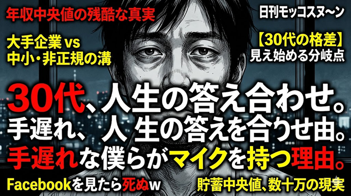 統計上の「中央値」という現実。そして、スレッドに並ぶ「年収1000万」と「手取り8万」という剥き出しの格差。