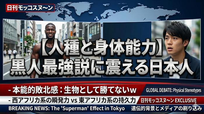 SNSを中心に「日本人は黒人のフィジカルを過剰に恐れている」という投稿が拡散され、海外の英語圏でも「これは人種差別ではないか」と物議を醸しています。一方で、科学的には人種間の能力差よりも個人差の方が大きいとされていますが、メディアによるステレオタイプが恐怖心を助長している側面も指摘されています。