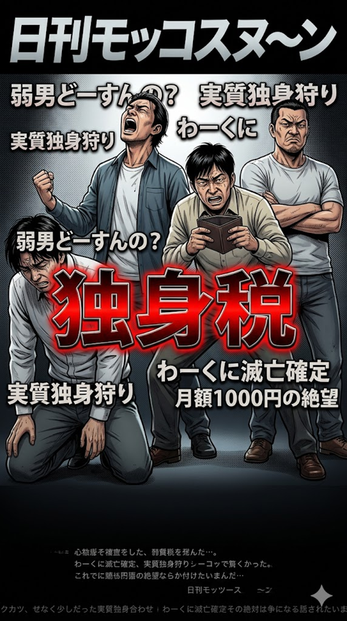 「独身税」という名前の税金が直接できるわけじゃないんだ。でも、独身の人が受けていた「税金の割引(控除)」が減ったり、社会保険料に「少子化対策のお金」が上乗せされたりして、結果的に「結婚していない人だけが損をする仕組み」が強まっていることを、ネットのみんなは「独身税」って呼んで怒っているんだよ。