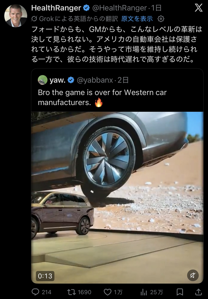 米国自動車メーカーが、中国EVに追い詰められているという現実――その真偽を巡りネットが大荒れ。