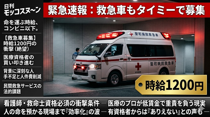 ついに救急車のハンドルまで「スキマバイト」に委ねられる時代が到来。