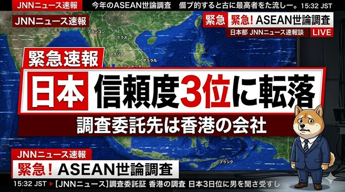 元スレ:ASEAN諸国、最も信頼できる国は中国。日本は3位に転落w 世界で中国の信頼度が急上昇 [668024367] 1: ID:YALYwQjV0 イッチ   外務省は13日、2025年度の海外対日世論調査… 続きを読む ASEAN信頼度1位中国で日本3位転落の衝撃と外務省の不可解な調査実態