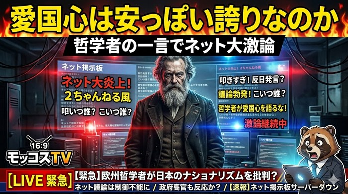 今回のスレ、最初は「また思想で殴り合ってるだけか」と見せかけて、途中からかなり面白くなります。 発端は、19世紀の哲学者ショーペンハウアーの挑発的な一言。愛国心を持つこと自体が悪なのか、それとも「中身のない誇り」だけを刺… 続きを読む 愛国心は安っぽい誇りなのか