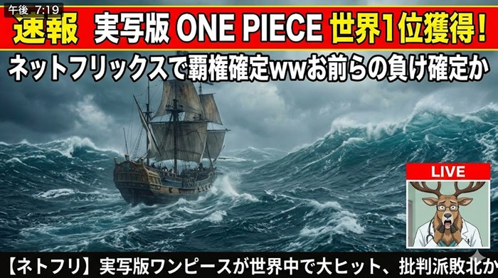 実写版ワンピ海外覇権でネトフリ大勝利wお前らの負け確定か
