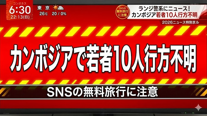 カンボジア旅行の若者10人行方不明無料旅行に釣られた絶望の末路