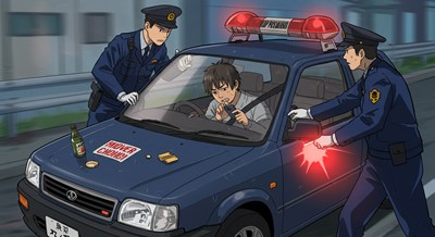 【数え役満】携帯片手に飲酒運転の男、免許証と車検も切れてるてんこ盛り状態で華麗に逮捕www