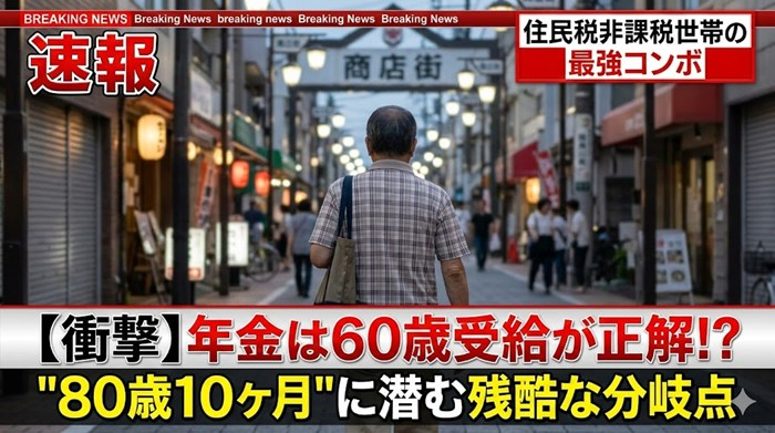 「年金は60歳から貰うのが合理的」……そんな税理士の爆弾発言がネットで話題になっとる。 「どうせ長生きせえへん」「国の罠や」と疑心暗鬼のスレ民たちやけど、実はそこには『住民税非課税世帯』という最強の生存戦略が隠されとった… 続きを読む 【爆益】税理士「年金は60歳から貰うのが正解」←これガチ!?独身男は80歳で“払い損”になる衝撃の分岐点と、住民税非課税世帯を狙う「最強コンボ」の正体が判明www