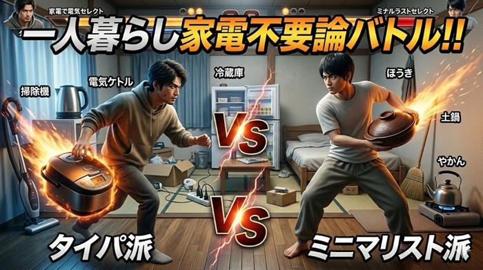 【悲報】一人暮らしで「炊飯器・掃除機・ケトル」は本当に不要?土鍋派vs家電フル装備勢の激論!自演失敗の闇も発覚www