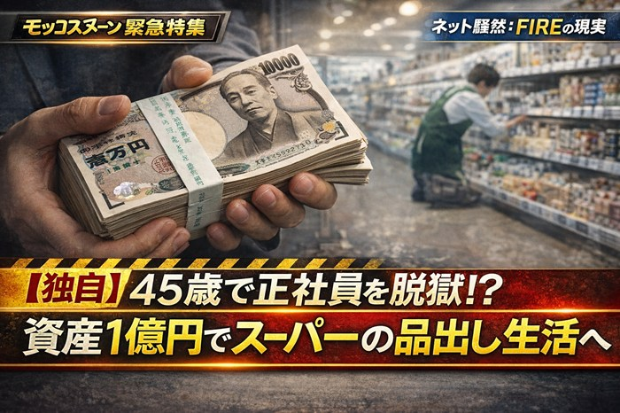「モッコスヌ~ン」へようこそ!編集長のワイや! 今日はガチで震えるスレを見つけてきたで。31歳にして資産2200万円を保有する強者が、45歳で正社員を脱獄して「週3スーパーの品出しフリーター」になるという壮大なライフプラ… 続きを読む 【夢のFIRE】31歳で2200万貯めたガチ勢、45歳で「週3スーパー品出し」への脱獄計画が凄まじいwww 1億円あれば独身フリーターで逃げ切れるか検証した結果…