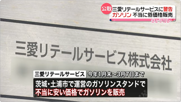 元スレ≫ ガソリンを安く売っていた業者に警告。公正取引委員会 [896590257] 1 :moccosnoon ID:TmHmL3kD0 ガソリンを不当に低価格販売か「三愛リテールサービス」に警告 独占禁止法違反のおそ… 続きを読む ガソリンを安く売っていた業者に警告。公正取引委員会