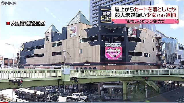 【悲報】女子中学生、ドン・キホーテの屋上から買い物カートを投げ捨て殺人未遂で逮捕