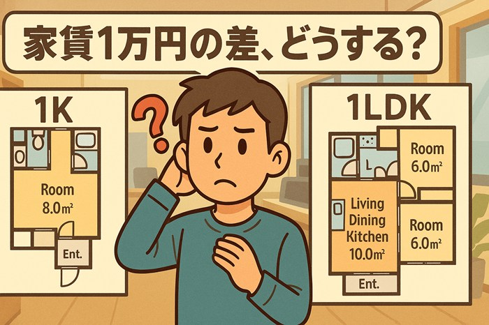 【相談】一人暮らしで1Kは狭い?家賃1万円差の1LDKと迷ってるんやが…【画像あり】