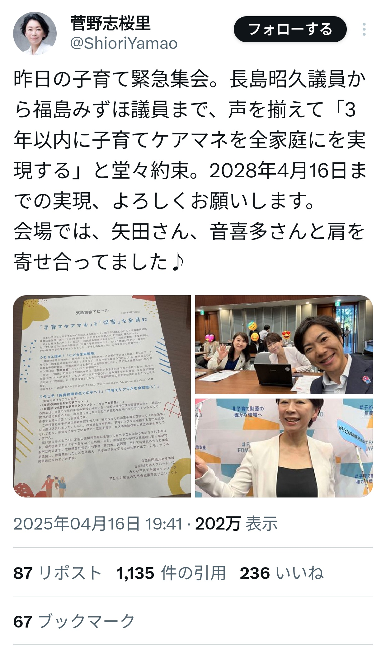 子育てケアマネージャー導入計画の真相と子育て世代のリアルな叫び📢 ある元議員が提唱した「2028年までに全ての子育て世帯にケアマネージャーを導入する」という突飛な政策提案が、子育て世代を中心に大きな波紋を呼… 続きを読む 【炎上必至】子育て世帯完全無視!?謎のケアマネ導入案に怒りの声殺到!