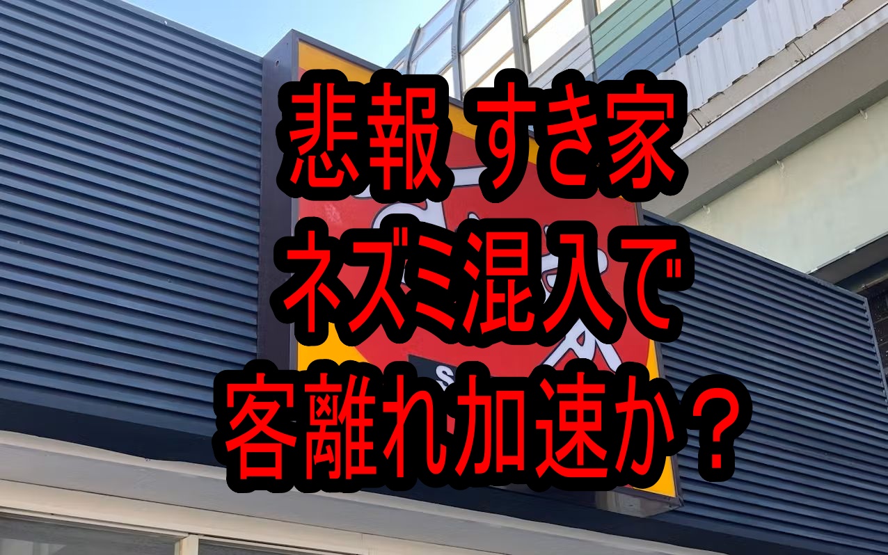 すき家売り上げ大幅ダウン!ネズミ騒動と値上げがダブルパンチ 牛丼チェーン「すき家」が発表した4月の売り上げは、前年同月比でなんと20%以上も減少!これはコロナ禍以来の大幅な落ち込み。原因は、相次ぐネズミの異… 続きを読む 【悲報】すき家、ネズミ騒動で売り上げ2割減…逝ったああああああ
