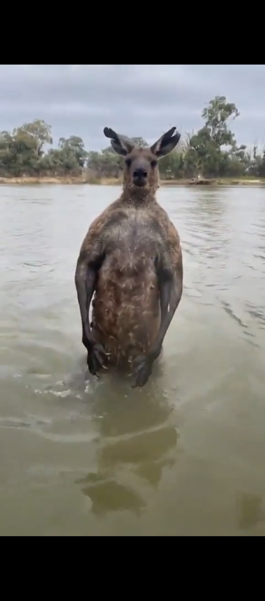川で泳いでいた犬、カンガルーに捕まってしまう…