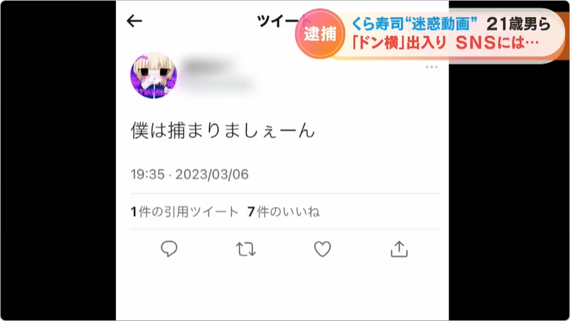 くら寿司の逮捕男、「僕は捕まりましぇーん笑」とツイートした翌日に逮捕されていた