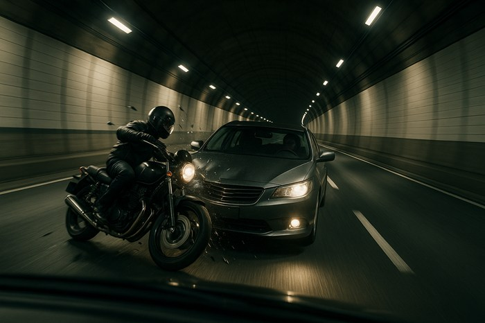 【衝撃】「え?私今何かに当たった?」走行中のバイクを撥ねたドライバーのまさかの反応に戦慄!