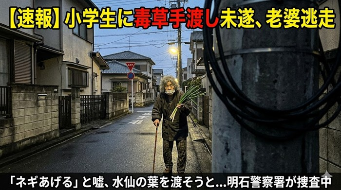 皆様、ようこそ「モッコスヌ〜ン」へ。今回ご紹介するのは、兵庫県明石市で発生した、一見するとシュールでありながら、その実態は極めて戦慄を覚える「不審者事案」の話題です。警察が発表した「物品譲渡未遂」という耳慣れない名称の裏… 続きを読む 【悲報】老婆「ネギあげるw」小学生に毒草を渡す事案が発生