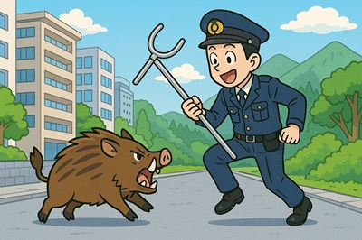 警察官vsイノシシ!刺股一本で立ち向かう現場のリアルがヤバすぎると話題に