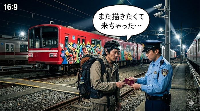 深夜の車両基地に忍び込んで巨大な落書き……。しかも再入国のタイミングで逮捕という、ドラマのような展開のスレをまとめました。 1: ID:aqnZTyAn0.net イッチ 去年、東京・文京区の車両基地に侵入し地下鉄の車両… 続きを読む 地下鉄の車両にスプレーで巨大な落書きをしたとして、オーストラリア人の男を逮捕